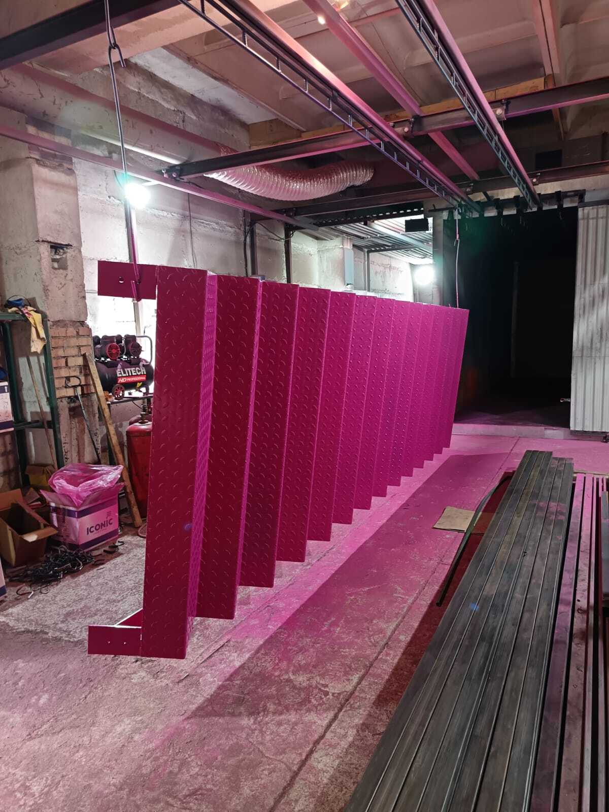 Были выполнены работы по резке, подготовке поверхности и порошковому окрашиванию элементов