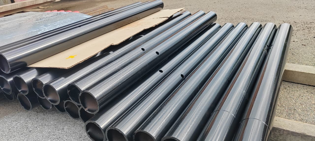 Серия металлических труб окрашена порошковым методом в чёрный глянцевый цвет. Покрытие равномерное, без потёков и дефектов, устойчиво к механическим воздействиям и коррозии.