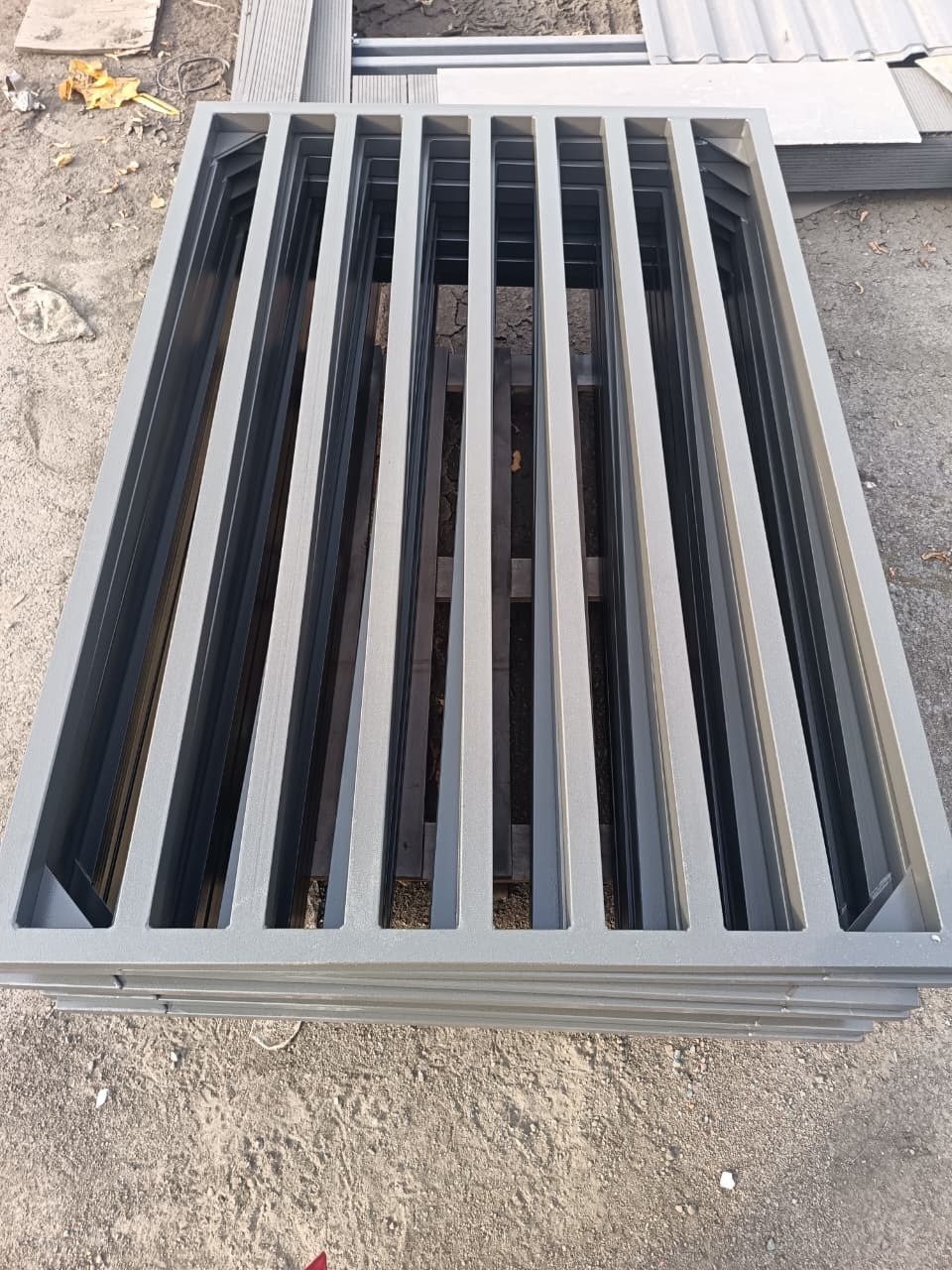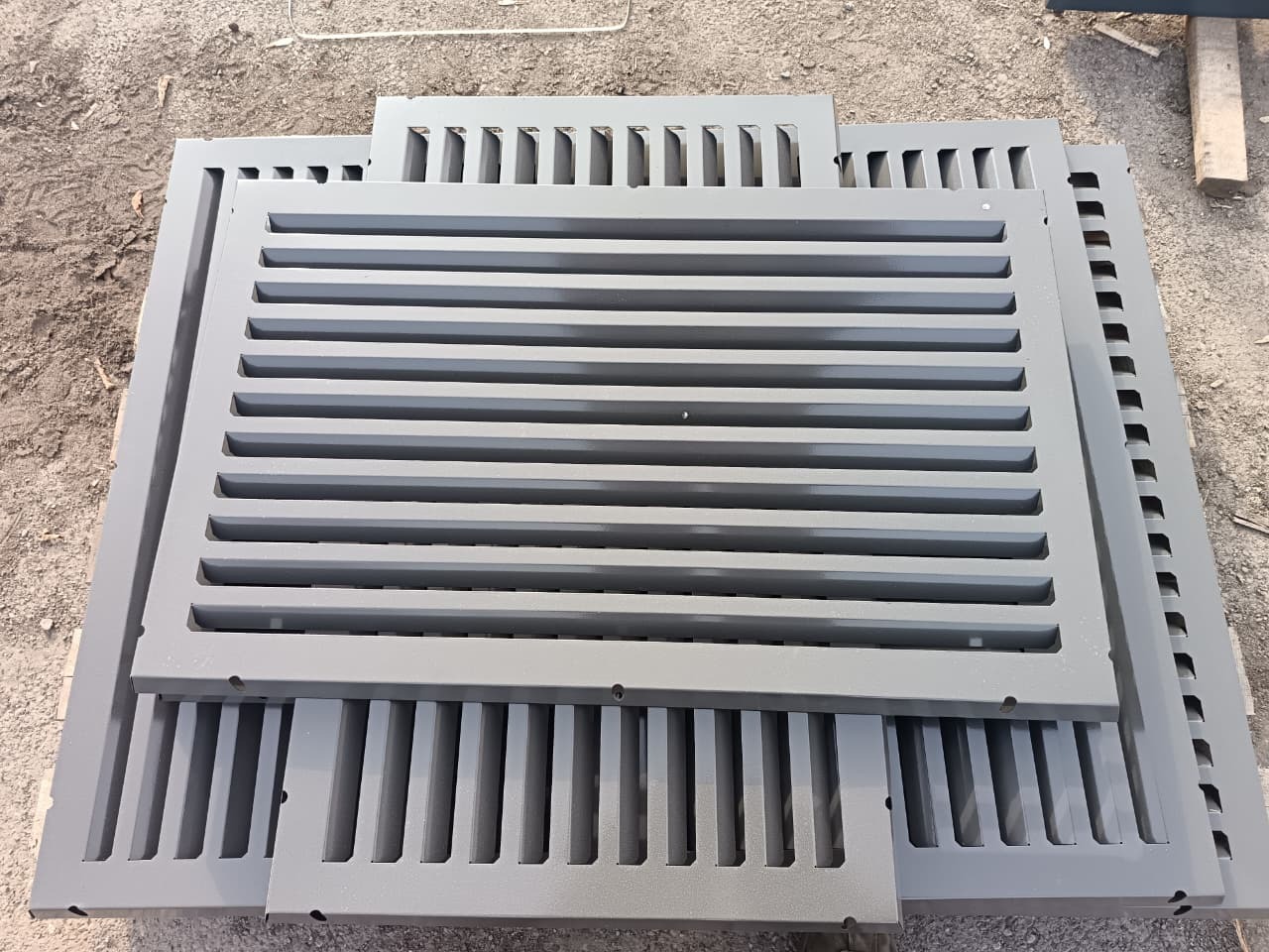Произведены и окрашены металлические вентиляционные решетки с жалюзийным профилем. Конструкция выполнена из листовой стали с точной лазерной резкой и гибкой, что обеспечивает высокую жёсткость и аккуратную геометрию.